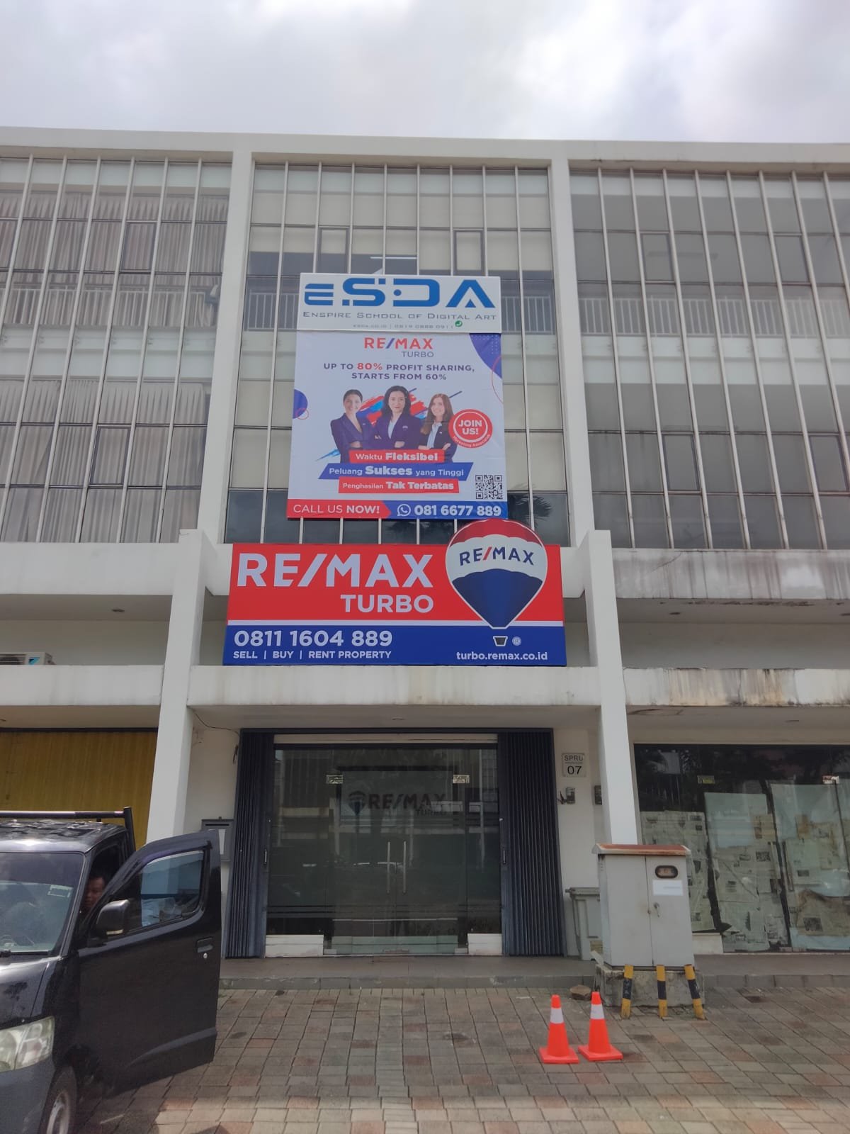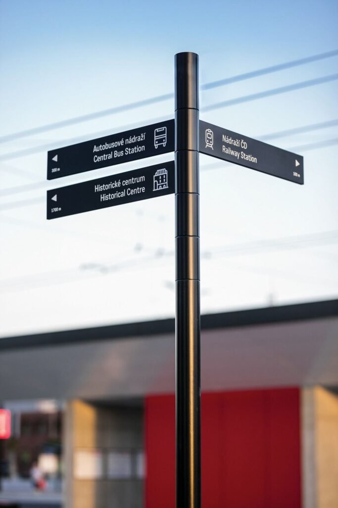 Media outdoor berupa huruf atau papan penunjuk untuk menampilkan nama brand atau informasi lokasi secara jelas.